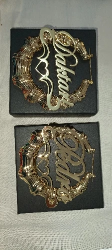 جميلة!! شراؤها كهدية عيد الميلاد لابنتي وأنها وصل جيدا مقدما! الفولاذ المقاوم للصدأ و الذهب مطلي. لطيفة حجم والوزن. لا ضوء أو الثقيلة جدا. أسماء هي بقعة على ووضعها تماما. أوصي هذا البائع!