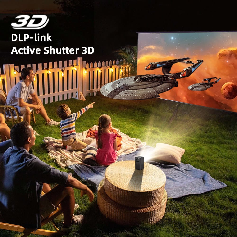 جهاز العرض BYINTEK P20 هو رفيقك المثالي للترفيه في الهواء الطلق أو في منزلك. استمتع بتجربة السينما الثلاثية الأبعاد وشاركها مع أصدقائك وعائلتك.