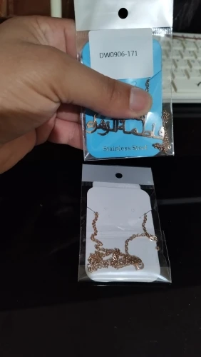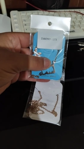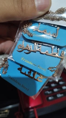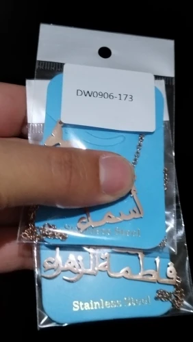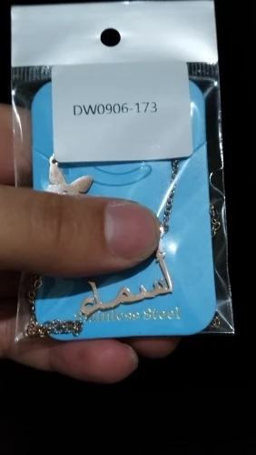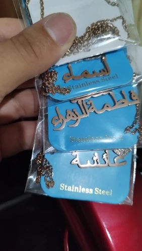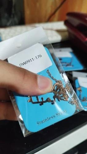 قلادة نسائية مذهلة جدا تستحق خمسة نجوم و اكثر . المنتج مثل ما في الوصف تأتي بتصاميم راقية ثمينة للغاية. كتابة الاسم الثنائي المزدوج بحروف كبيرة واضحة جدا مشرقة غير قابلة للصدأ نوعية ممتازة جدا. التغليف ممتاز وصلني إلى الجزائر في مدة عشرين يوم . شكرا كثيرا للبائع يستحق خمسة نجوم و اكثر . أنصح بالتعامل معه
