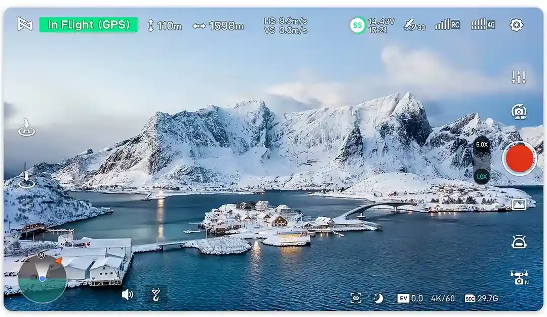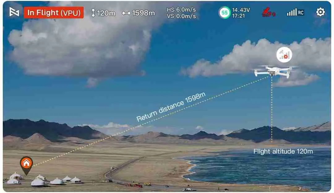 - قياس المسافة الذكي: قدرة الدرون على عرض ارتفاع الطيران ومسافة العودة بدقة حتى بدون GPS توفر بيانات طيران موثوقة وتحسينًا للسلامة في هذه الظروف.