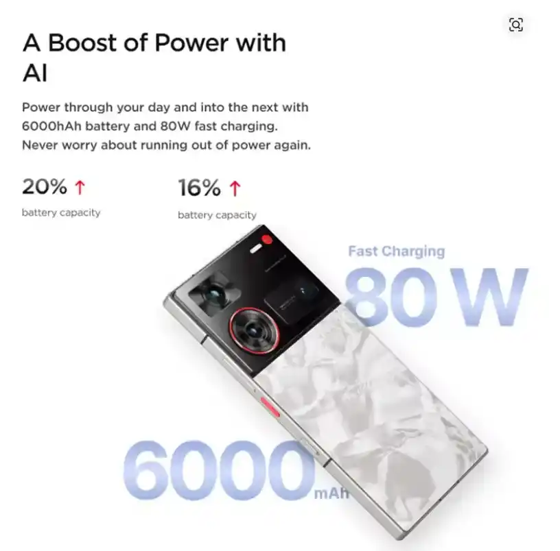 6000mAh وشحن سريع جداً بقوة 80W
