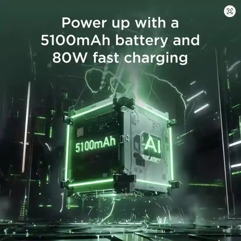 - بطارية وشحن فائق السرعة: يأتي ببطارية كبيرة بسعة 5100 مللي أمبير تدوم طويلاً، ويدعم الشحن السريع بقوة 80 واط، مما يتيح شحن الهاتف بالكامل في وقت قصير جدًا.