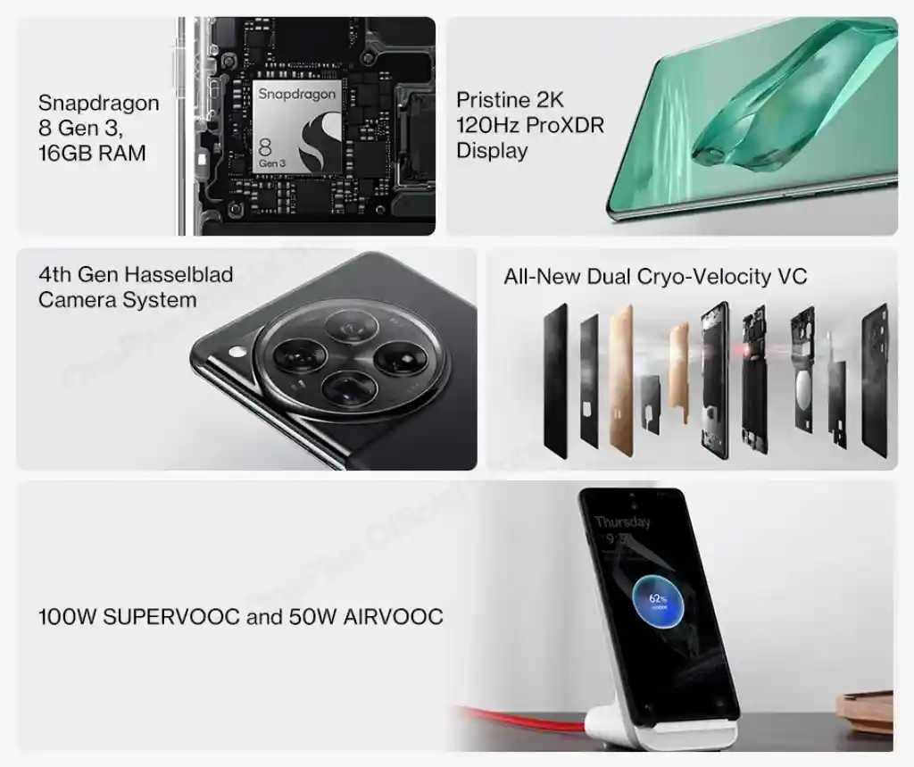يتميز الهاتف بشاشة ProXDR بمعدل تحديث 120 هرتز، وذاكرة وصول عشوائي تصل إلى 16GB من نوع LPDDR5X. كما يأتي بنظام تشغيل OxygenOS 14 المبني على أندرويد 14، مما يعزز من أداء الهاتف.