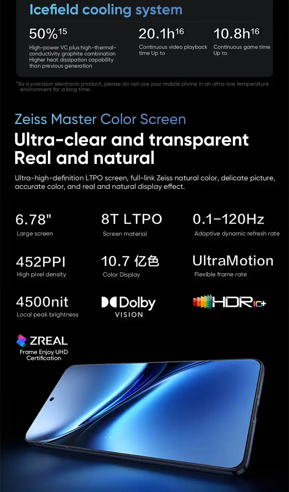 ذاكرة وتخزين سريعان (LPDDR5X و UFS4.0): يضمنان استجابة سريعة للنظام وتعدد مهام سلس، مع سرعة نقل بيانات عالية.