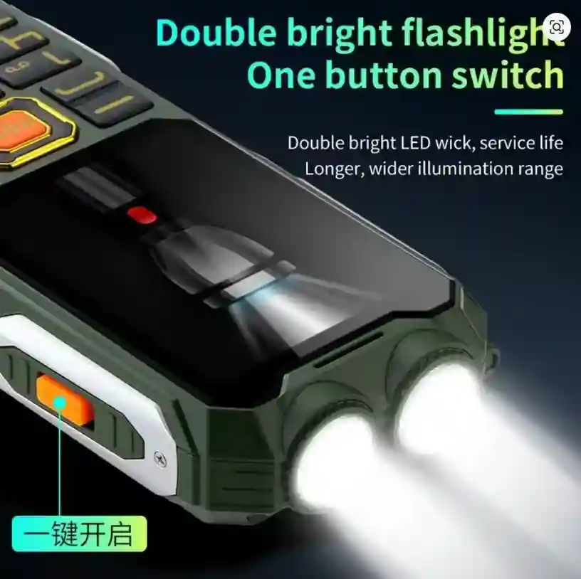 هاتف متين للغاية مع شاشة كبيرة، زر ضغط، طاقة كبيرة، متينة، سعر منخفض، هاتف محمول محمول، مصباح مزدوج، واتساب، شريحتي اتصال، راديو FM، صوت عالٍ، مناسب لكبار السن