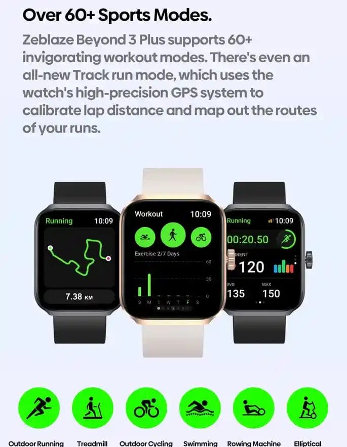 في قلب Zeblaze Beyond 3 Plus تكمن قدراتها الرياضية المتميزة. تدعم الساعة أكثر من 60 وضعًا رياضيًا متنوعًا، تغطي كل شيء من الجري والسباحة إلى ركوب الدراجات والتدريبات الداخلية. الميزة الأبرز هنا هي نظام تحديد المواقع (GPS) المدمج عالي الدقة، و الذي يسمح بتتبع مسارك ومسافتك و سرعتك بدقة فائقة دون الحاجة لهاتفك، و هو أمر نادر في هذه الفئة السعرية. كما أنها تتضمن وضع “Track run” الجديد والمحسّن لتتبع الجري على المضمار بدقة غير مسبوقة، و تدعم مزامنة بيانات التمرين مع تطبيقات شهيرة مثل Strava و Apple Health عبر تطبيق Fitbeing.