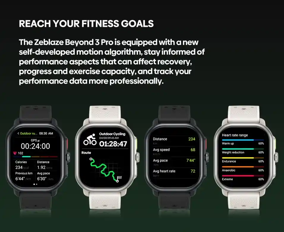 تتميز ساعة Zeblaze Beyond 3 Pro بتتبع دقيق للأنشطة الرياضية باستخدام أنظمة الملاحة المتعددة، مما يضمن دقة عالية في تتبع المسارات. كما توفر مراقبة صحية شاملة تشمل قياس معدل ضربات القلب ومستوى الأكسجين في الدم وتتبع النوم ومستويات التوتر.