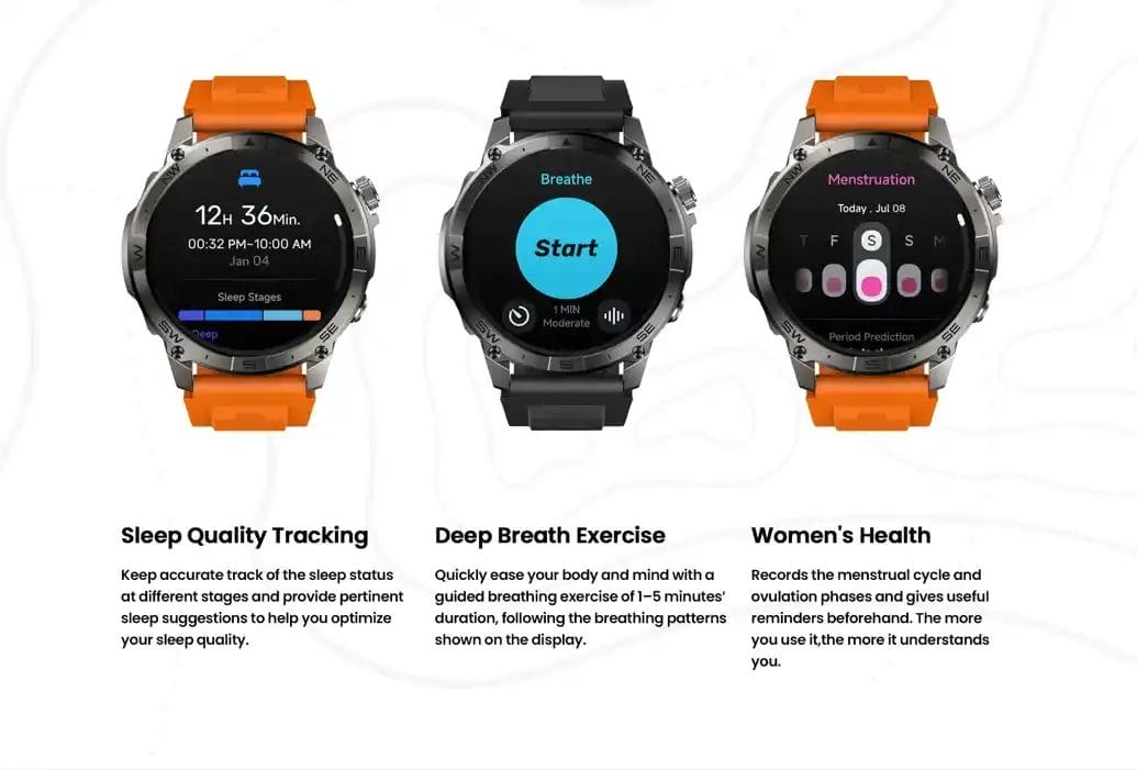 ساعة Zeblaze Stratos2 Plus ليست مجرد ساعة ذكية، بل هي أداة صحية شاملة. توفر هذه الساعة مجموعة من الميزات الصحية التي تساعدك على تحسين صحتك العامة.